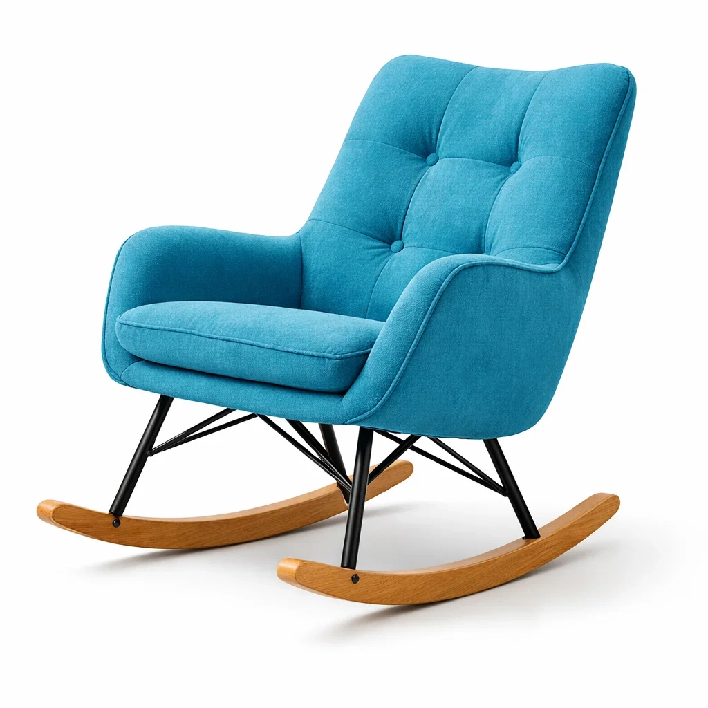 Fauteuil à bascule d’intérieur en tissu polyester et métal bleu 85x65x90 cm