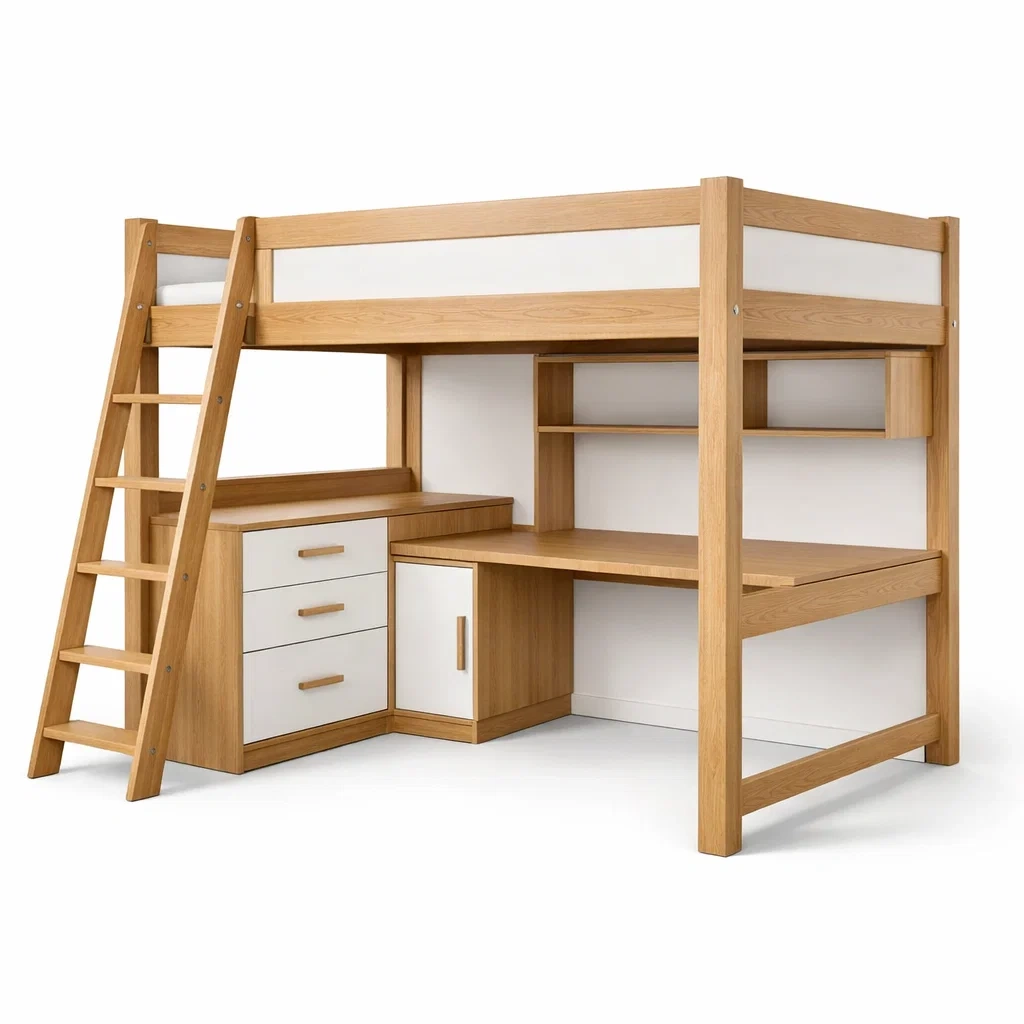 Lit mezzanine en bois et mdf avec bureau et rangement