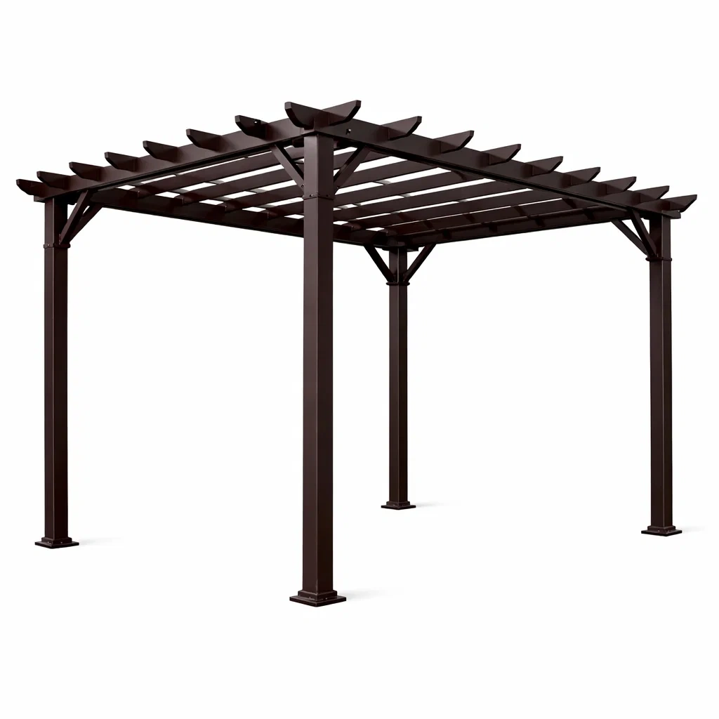 Pergola extérieure en aluminium avec une finition de revêtement en poudre pour une résistance accrue aux intempéries. Dimensions totales : 300x300x240 cm. Couleur : Marron.